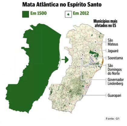 O que ocorreu no Espírito Santo assemelha-se muito à forma como se deu a exploração e a degradação da Mata Atlântica nas demais regiões do Brasil. Entretanto, foi no início do século passado que houve um aumento de áreas de plantações e de pastagens, assim como do estabelecimento de grandes indústrias em solo capixaba, destacando-se, então, as consequentes agressões à biodiversidade local. Atualmente, restam apenas 16,4% de matas remanescentes no estado do Espírito Santo.
