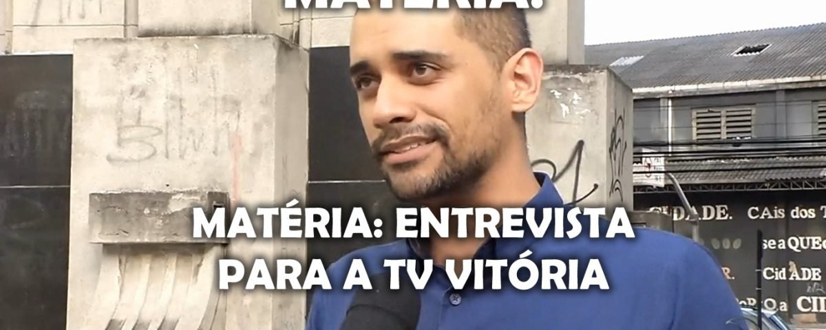No dia 20 de setembro dei uma entrevista para o Trailer do Cidade Alerta, da TV Vitória, falando sobre o abandono dos patrimônios históricos do centro de Vitória-ES. Na matéria, Michel Bermudes comenta sobre o Relógio da Praça Oito de Setembro, a Praça João Clímaco, o Memorial da Praça do Papa e as escadarias do centro, Maria Ortiz, Dionísio Rezende e São Diogo.