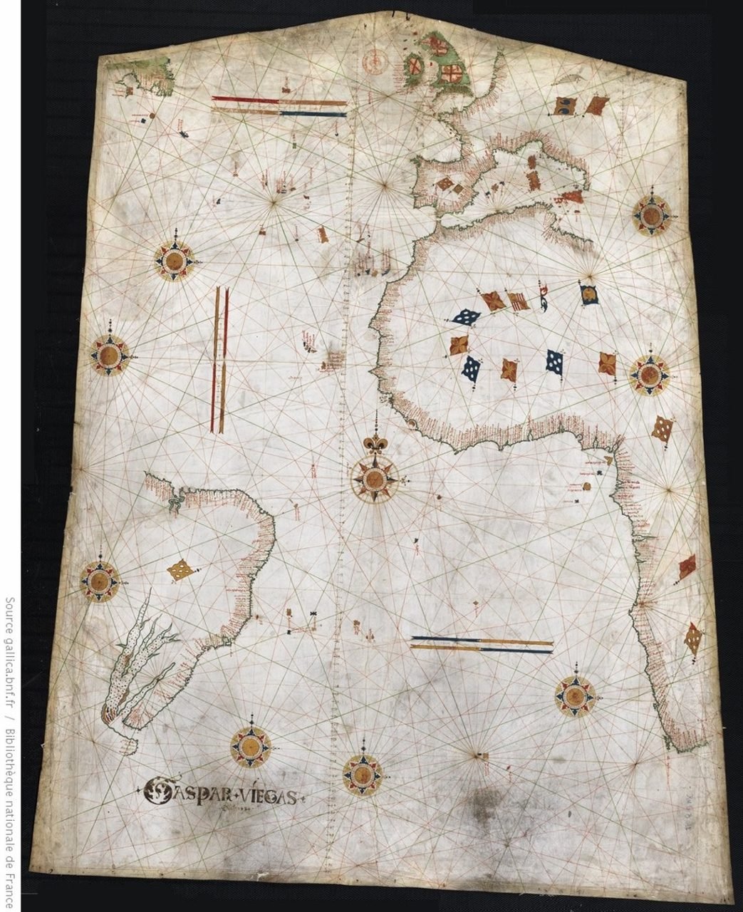 A carta de Gaspar Viegas encontra-se na Biblioteca Nacional de Paris, para onde foi transferida em 1865 vinda dos Arquivos do Império. A Biblioteca Nacional do Rio de Janeiro possui uma cópia parcial, que mostra apenas o Brasil no mapa de Gaspar Viegas.
