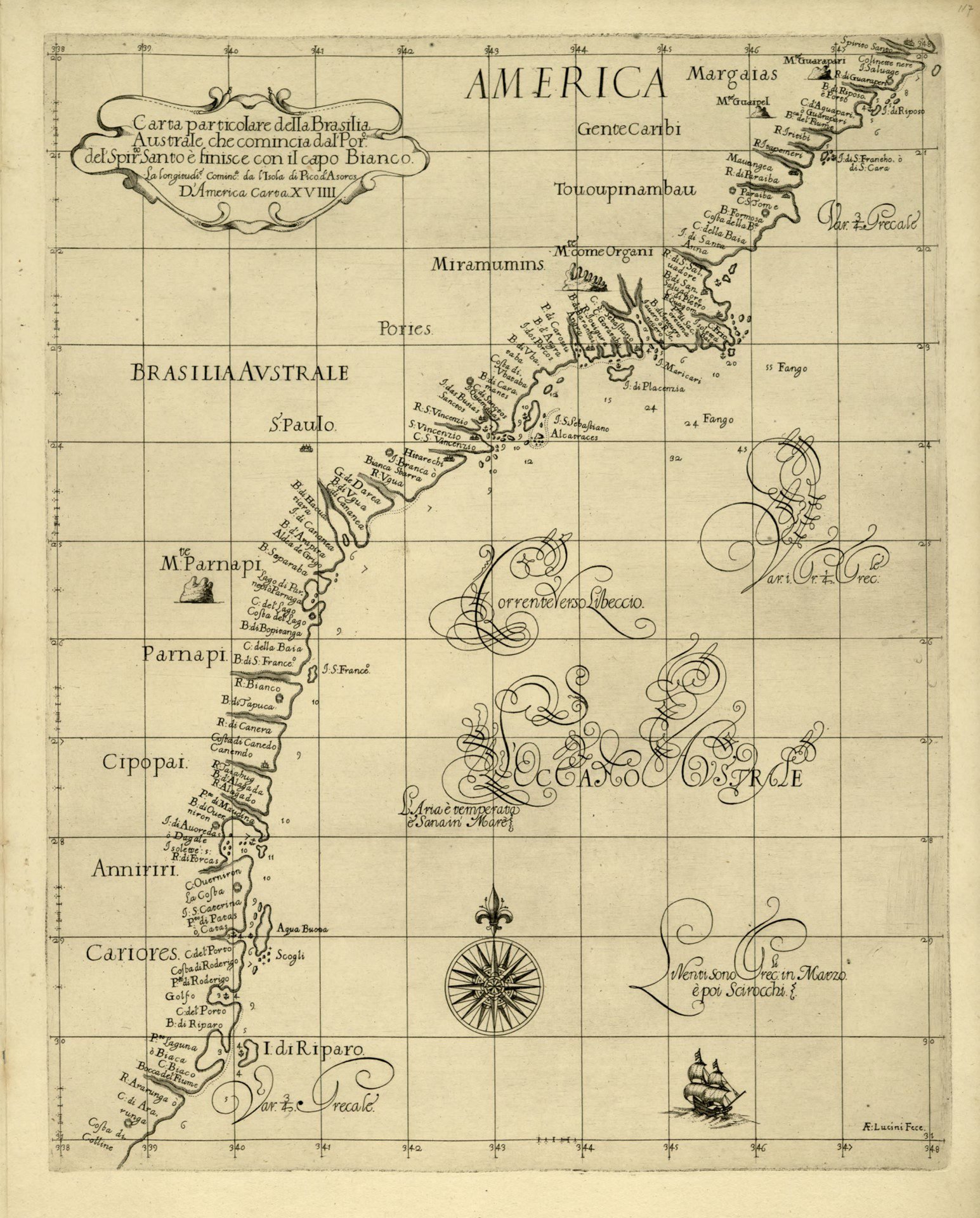 Dudley, Sir Robert. Carta Particolare della Brasilia, che comincia dal Porto del'Spirito Sancto è finisce con il capo Bianco. In: Dell Arcano del Mare. 1646. Disponível em: . Acesso em: .