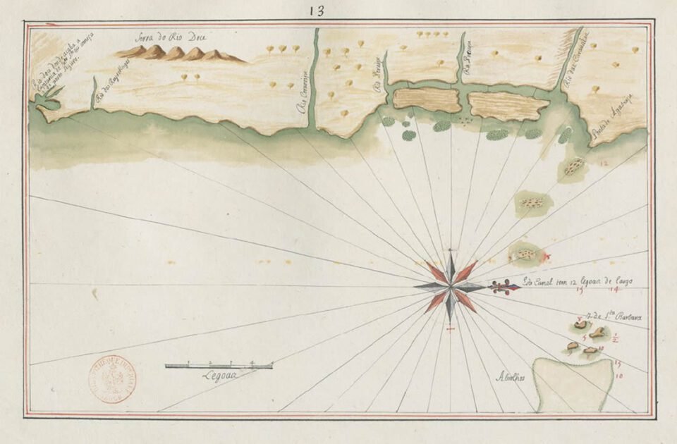 Este mapa encontra-se no Descripção de todo o Maritimo da terra de S[an]ta Crvs chamado uulgamento o Brazil, por João Teyxeira Cosmographo de sua Maiestade, anno 1640, cuja autoria é de João Teixeira Albernaz, o Velho. Ele é acompanhado de […]